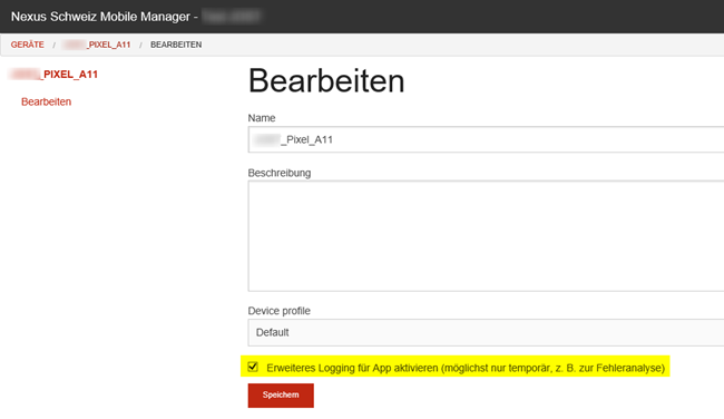Damit das Logfile auf dem Gerät eingesehen werden kann, braucht es eine Einstellung im Mobile Manager.