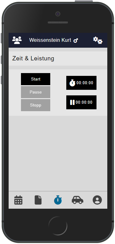 Zeit | Erfassen von Zeiten + Zeitübersicht und Start / Pause / Stop |
