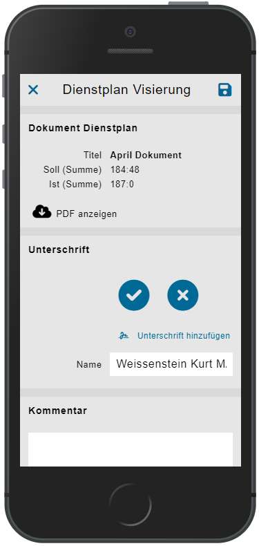 Visierung | Visieren von Dienstplänen + PDF Dienstplan Ansicht + Signieren |