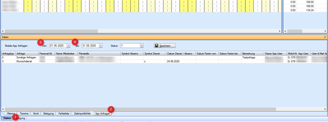 Im Dienstplan sind die App Anfragen unter Daten / App Anfragen zu finden.