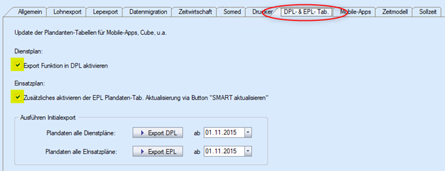 - Sofern die NEXUS / PERSONAL eingesetzt wird, muss das Häkchen bei Dienstplan auch gesetzt sein.
