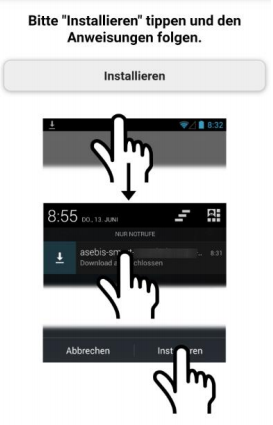 Installieren klicken und anschliessend die App herunterladen. Nach dem Herunterladen kann das *.apk File geöffnet und installiert werden.