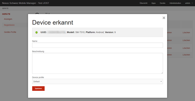 Das Gerät wird nun im Mobile Manager registriert und es können Gerätedetails eingegeben werden.