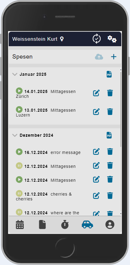 | Die Spesen werden monatlich kategorisiert und man hat jederzeit die Möglichkeit, ein PDF daraus zu generieren.