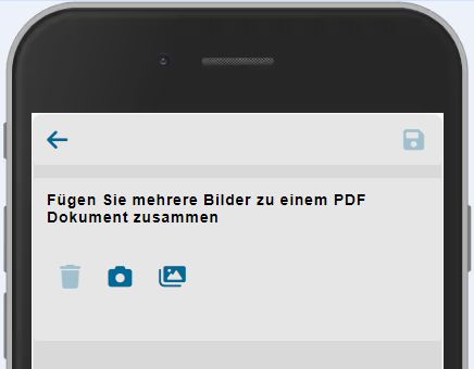 Sofern man das Plus Icon drück, öffnet sich nochmals eine weitere Maske. Diese dient dazu, mehrere Fotos in ein PDF umzuwandeln. Diese Funktion hilft zum Beispiel bei mehrseitigen Dokumenten / Verträge. Nach dem Hinzufügen aller relevanten Fotos, muss nur noch gespeichert werden und das PDF wird direkt generiert.