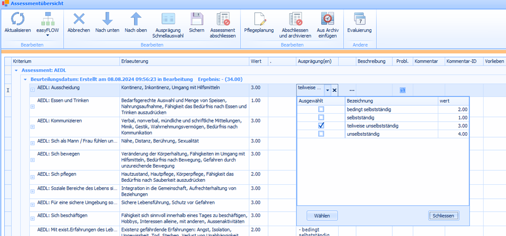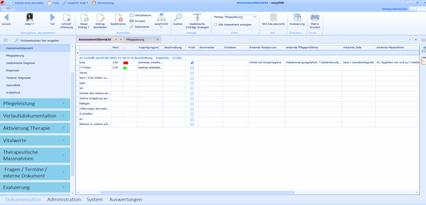 + Sie können aus dem Assessment in die Evaluation der Pflegeplanung. Die Evaluation wird im Kapitel Pflegeplanung beschrieben.
