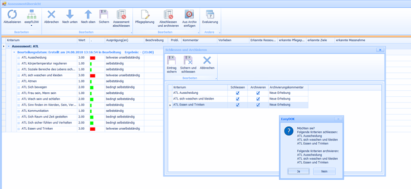 Bezieht sich auf die Pflegeplanung. Pflegeplanungen zu einem oder mehreren Kriterien können abgeschlossen und mit Kommentar (zwingend) archiviert werden.