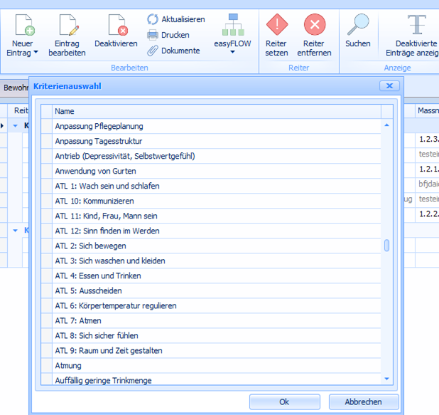 Möchte Sie eine Pflegeplanung erstellen ohne zugehöriges Assessment, können Sie hier ein neues Kriterium hinzufügen. Wählen Sie das gewünschte Kriterium aus ihrer Liste aus und bestätigen Sie mit Ok.