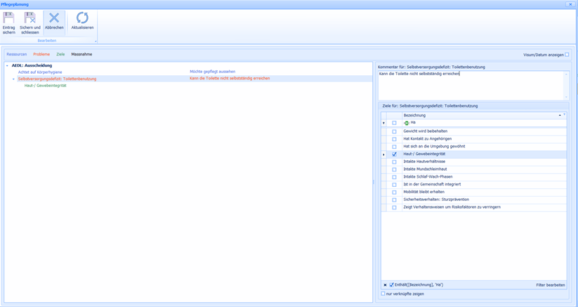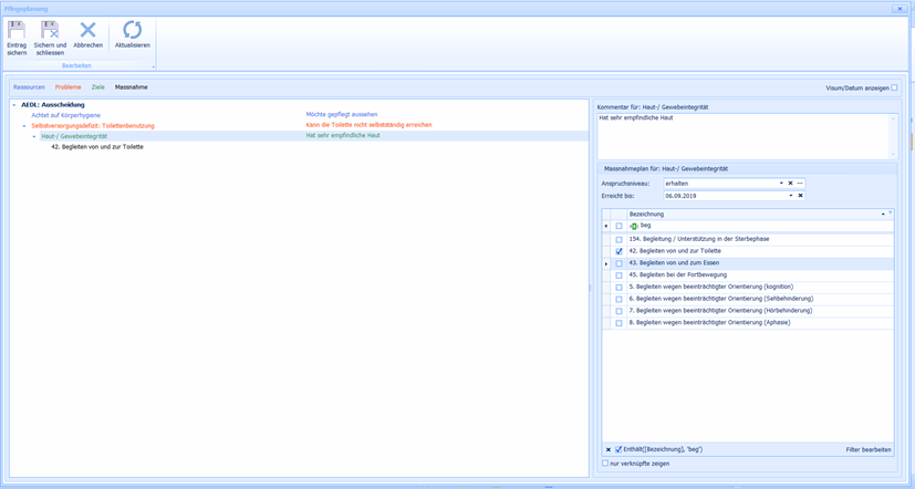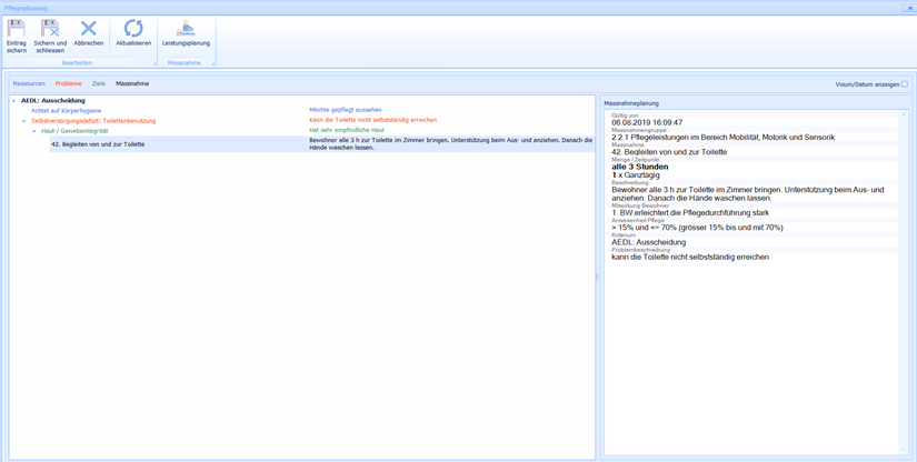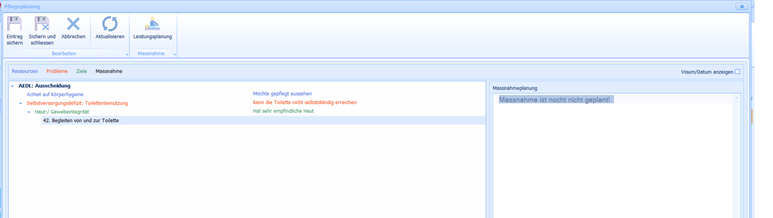 Haben Sie bereits Massnahmen geplant, können Sie diese mit der Pflegeplanung verknüpfen.