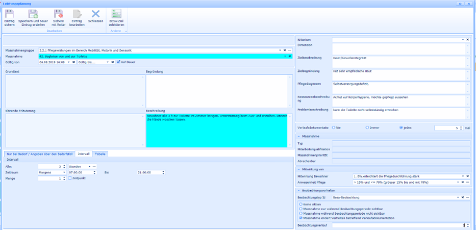 Haben Sie alle Ausprägungen erfasst, sichern Sie den Eintrag und können danach direkt über den Button Pflegeplanung ins Modul der Pflegeplanung.