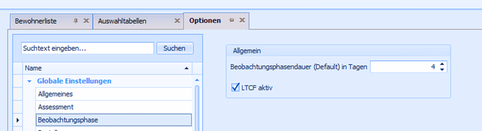 In den Optionen wird die Dauer der Beobachtungsphase in Tagen eingetragen.