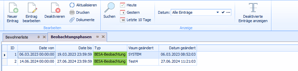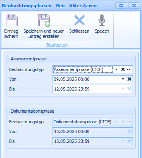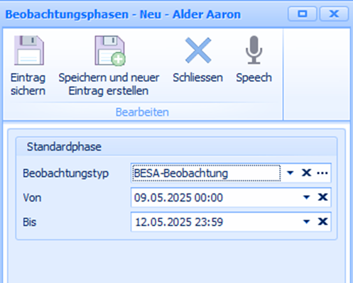 Die Dauer der Beobachtungsphase ist in den Grundeinstellungen ihres Systems hinterlegt. Das Bis Datum wird automatisch gesetzt, kann jedoch auch manuell geändert werden.