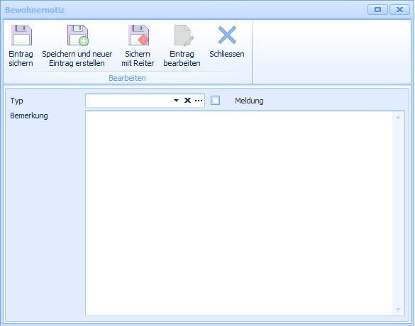 Schliessen Sie die Eingabe mit – Eintrag sichern, Sichern mit Reiter oder Speichern und neuer Eintrag erstellen - falls Sie eine weitere Bewohnernotiz erstellen möchten.