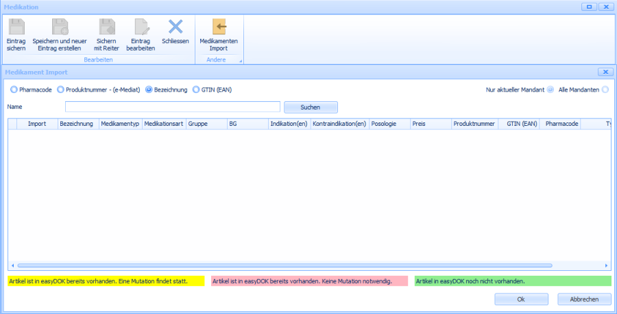 Es werden alle in Ihrem easyDOK vorhandenen Medikamente geladen. Die Medikamente, die