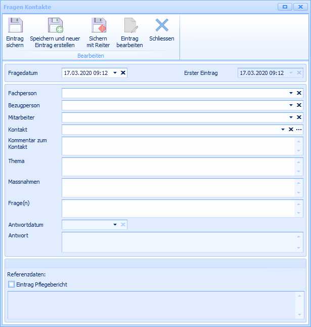 Neben Haus und Station auch das Datum von und bis, ausserdem die Fachperson, an welche die Frage gerichtet ist.
