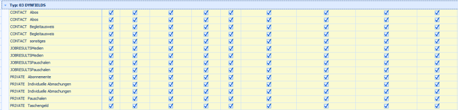 Hier können mehrere Auswahlmöglichkeiten in der Felderliste hinterlegt werden, aber nur eines bei den Freien Feldern davon ausgewählt werden