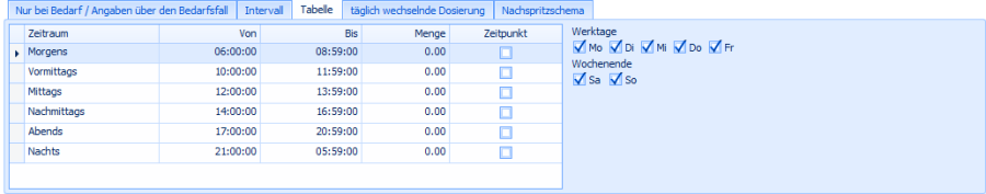 Bei dem Zeitraum geben Sie an, zu welchen Zeitpunkt das Medikament verabreicht werden muss.