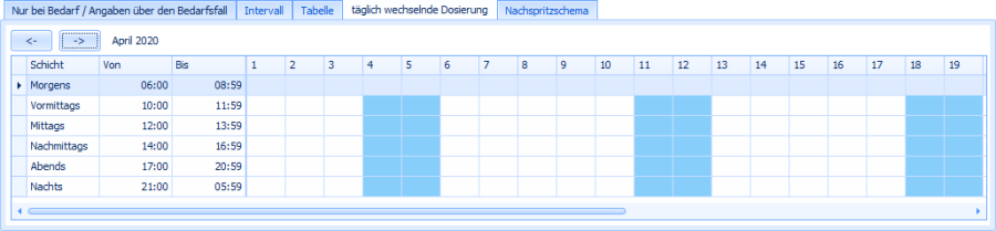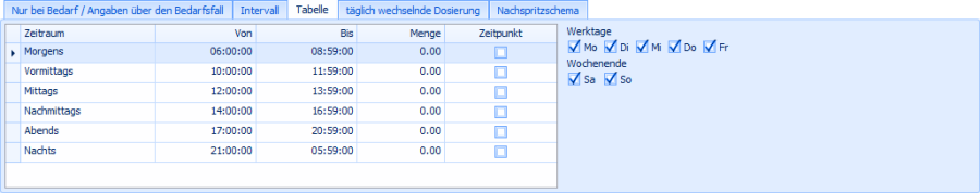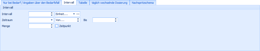 - Intervall (ein Medikament z.B. alle 3 Tage)