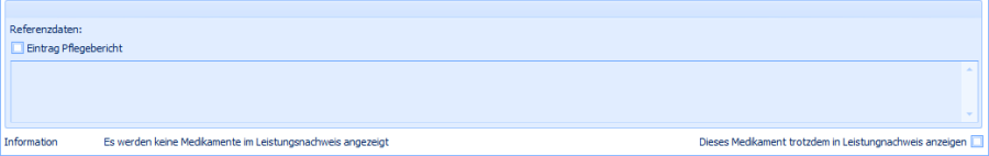 Falls von Ihrer Leitung die Entscheidung getroffen wird, dass keine Medikamente im Leistungsnachweis angezeigt werden, besteht die Möglichkeit, trotzdem bestimmte Medikamente anzuzeigen indem Sie am entsprechenden Ort ein Häkchen setzen.