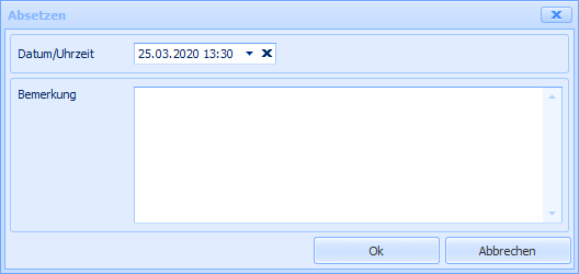 In das Feld Datum/Uhrzeit wählen Sie den entsprechenden Zeitpunkt wann das Medikament gestoppt werden soll.