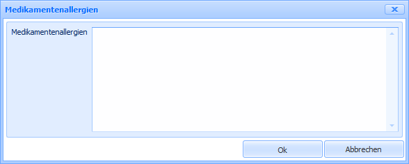 Auf dem Blatt Medikation haben Sie die Möglichkeit eine Medikamentenallergie zu hinterlegen. Klicken sie hierzu auf den Button Medikamentenallergie. Geben Sie hier im Freitext das Medikament bzw. den Wirkstoff ein, auf den Ihr Bewohner allergisch reagiert.