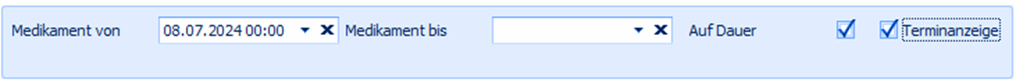 Wählen Sie den entsprechenden Zeitraum im Datumsfilter in der Toolbar aus. Abgesetzte Medikamente werden Ihnen weiss und mit Datum bis angezeigt.