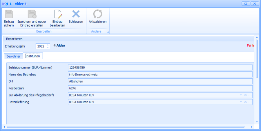Haben sie die Eingabe in NQI korrekt abgeschlossen, können sie die Daten Exportieren.