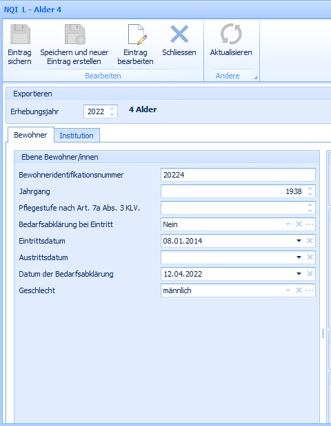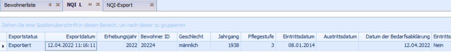 Im NQI-Export sind die exportierten Daten nicht mehr ersichtlich. Im Assembly NQI beim jeweiligen Bewohner sind die Daten als exportiert vorhanden.