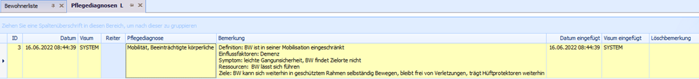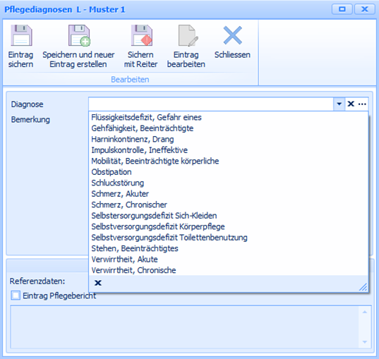 Die Auswahltabelle der Pflegediagnosen kann von ihrem Administrator erweitert werden.