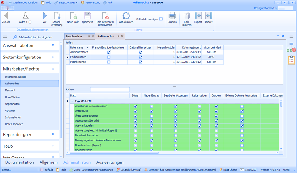 Bitte beachten Sie, dass eine Veränderung in den Benutzerrechten einer Rolle auf alle Mitarbeiter in dieser Rolle vergeben wird.