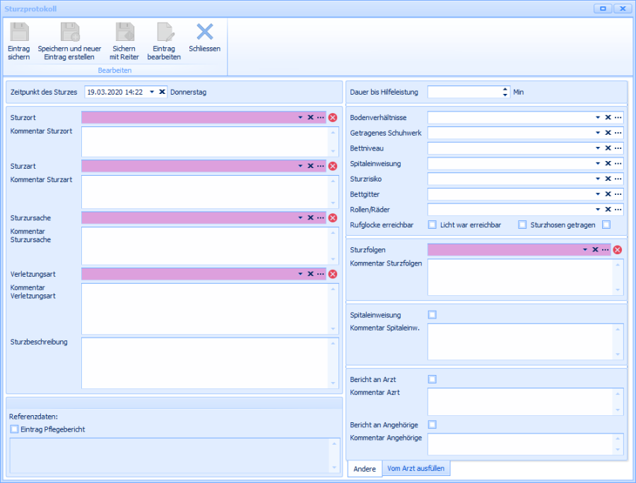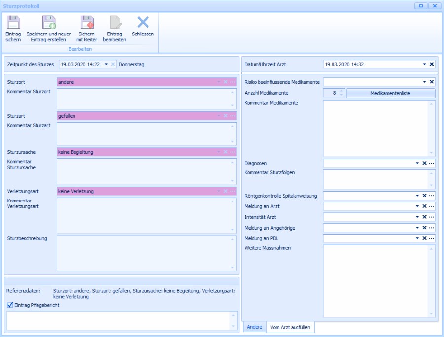 Um einen bestehenden Eintrag mit ärztlichen Angaben zu ergänzen, markieren Sie den betreffenden Eintrag und klicken mit auf - Vom Arzt ausfüllen -.