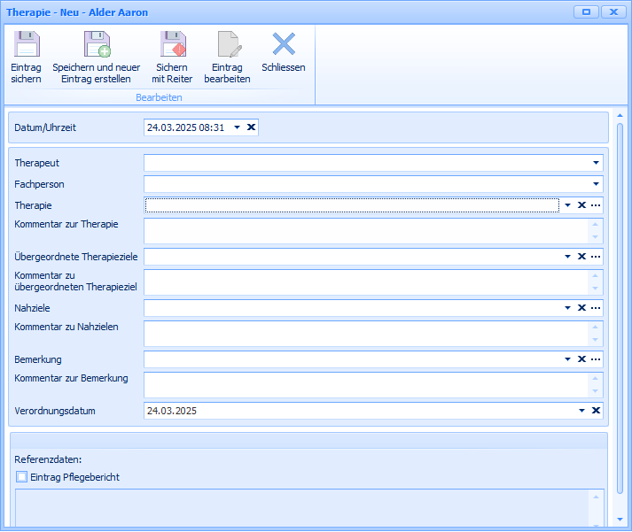 Anschliessend kann die Therapie im Kommentarfeld näher definiert werden.