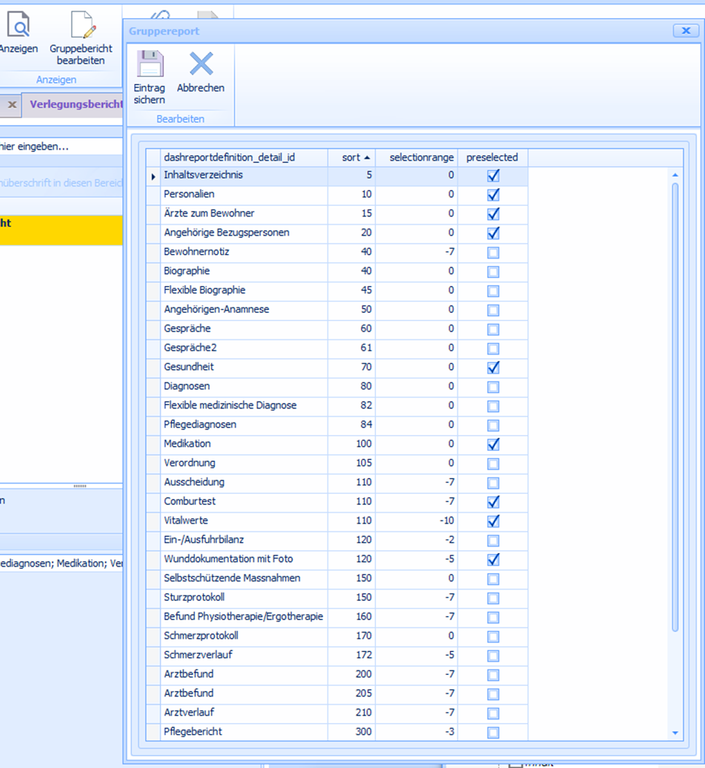 Wählen Sie dazu im Verlegungsbericht Gruppenbericht bearbeiten.