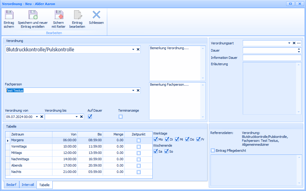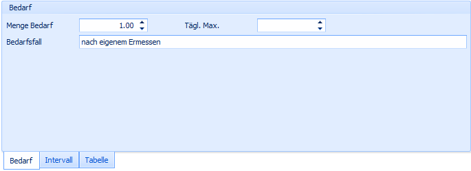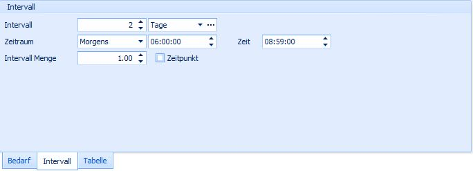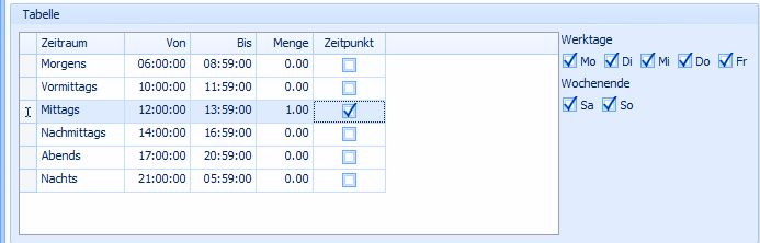 Wählen sie den Zeitraum und die Menge. Wenn sie eine Verordnung haben, die zu einer bestimmten Zeit ausgeführt werden muss klicken sie den Zeitpunkt mit an. Wählen sie zusätzlich auch die