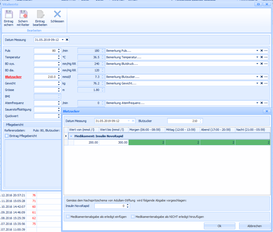 Wird bei einem Bewohner ein Blutzuckerwert eingegeben und es besteht gelichzeitig bei dem