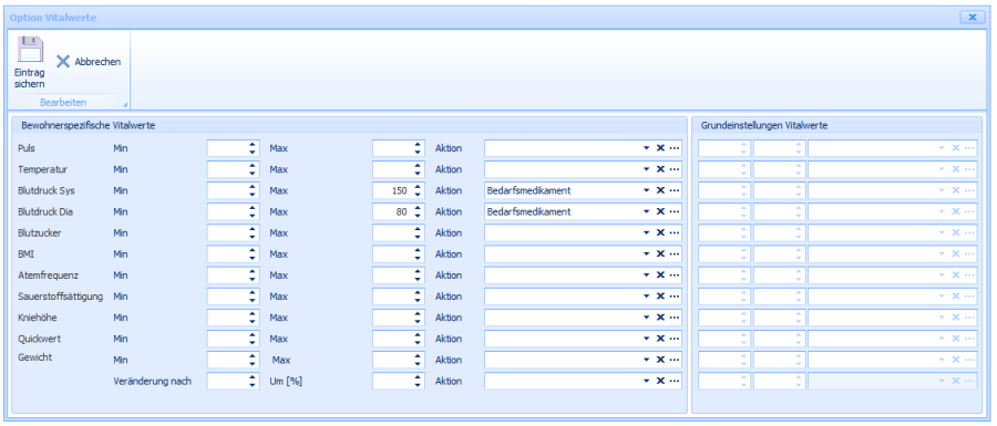 Grenzwerte individuell für den Bewohner anpassen, rechts sehen sie die global eingestellten