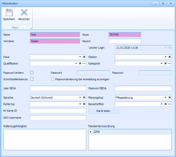 Unter Bereichsfilter wählen Sie nun die Zuordnung und Speichern. Ein Mitarbeiter kann nur die Einträge aus dem Bereich sehen, welchem er in den Rollenrechten zugeteilt wurde.