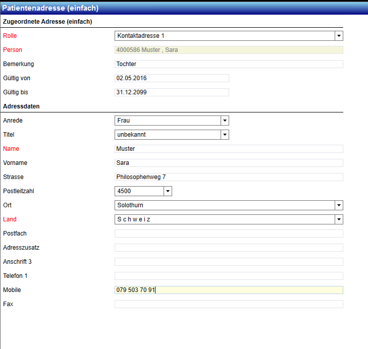 Da diese fallübergreifend gültig sind, werden sie nicht automatisch in die Adressen auf Fallebene kopiert und können dort auch nicht erfasst werden.