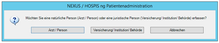 Alle Adressen, die aus dem Adressstamm ausgewählt werden (Hausarzt, Facharzt 1- 3) werden nicht wirklich erfasst, sondern aus dem bestehenden Adressstamm ausgewählt. Dies geschieht mit Neue Adresse für den Patienten oder F8.