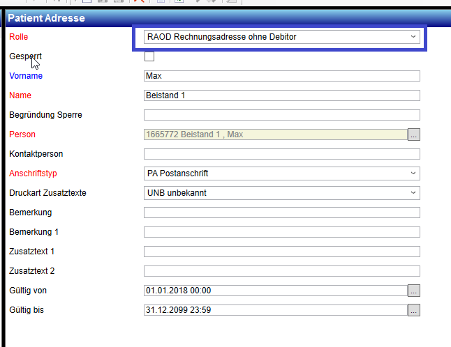 238 Patientenadresse mit Rolle 'Rechnungsadresse ohne Debitor'