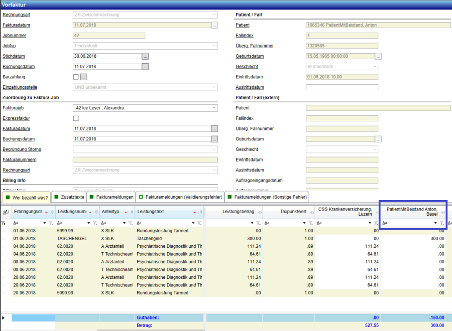 Vorauszahlungen / Depots, die für den Patienten geleistet werden, müssen auch immer dem Patienten zugewiesen werden, auch wenn sie vom Beistand ('Rechnungsadresse ohne Debitor') geleistet werden.