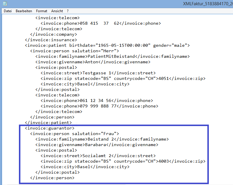 Im XML wird die 'Rechnungsadresse ohne Debitor' als Guarantor übernommen.