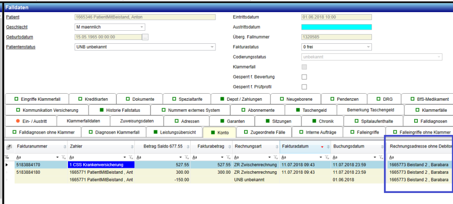 239 Anzeige der 'Rechnungsadresse ohne Debitor' auf Patientenebene
