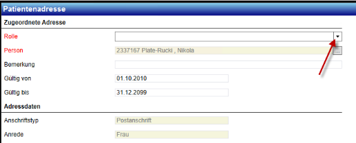 Die Rolle einer Patientenadresse kann geändert werden. Wenn es allerdings bereits verknüpfte Falladressen gibt, ist das Ändern folgender Rollen nicht mehr möglich: