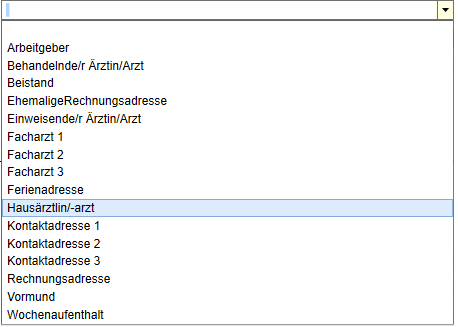 Mögliche Rollen für die Adresserfassungen (Patient und Fall).