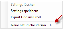 Falls die Rechnungsadresse vorhanden ist, dann auswählen und weiterbearbeiten, wie die Erfassung von Hausärzten. Wenn dir Rechnungsadresse noch nicht vorhanden ist, dann rechte Maustaste Neue natürliche Person oder F8 anwählen.