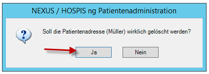 Falladresse auch löschen = Datensatz ist danach nirgends mehr vorhanden – weder auf dem Patient noch auf dem genannten Fall.