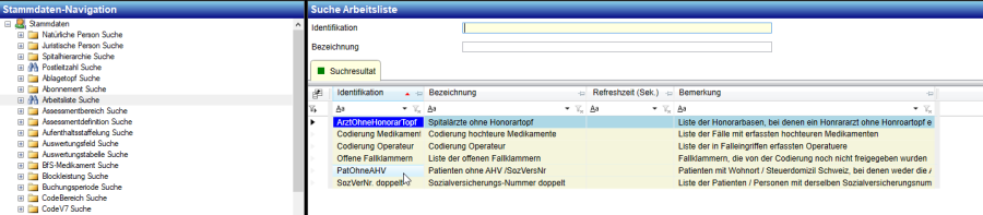 Abbildung 3 Arbeitslisten in den Stammdaten