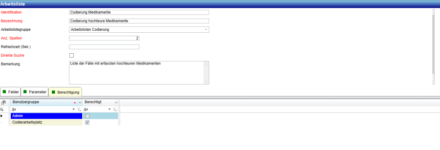 - Arbeitslistegruppe: Mit diesem Feld können die Arbeitslisten in Hauptmenü gruppiert werden.