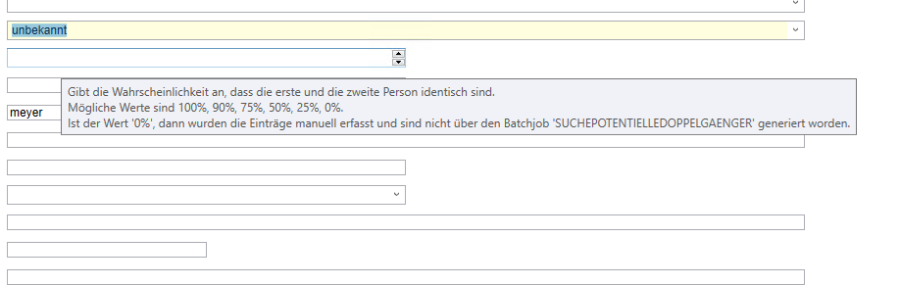75% = Name, Vorname, Ort (jeweils nur die ersten 3 Positionen), Geschlecht, Geburtsdatum